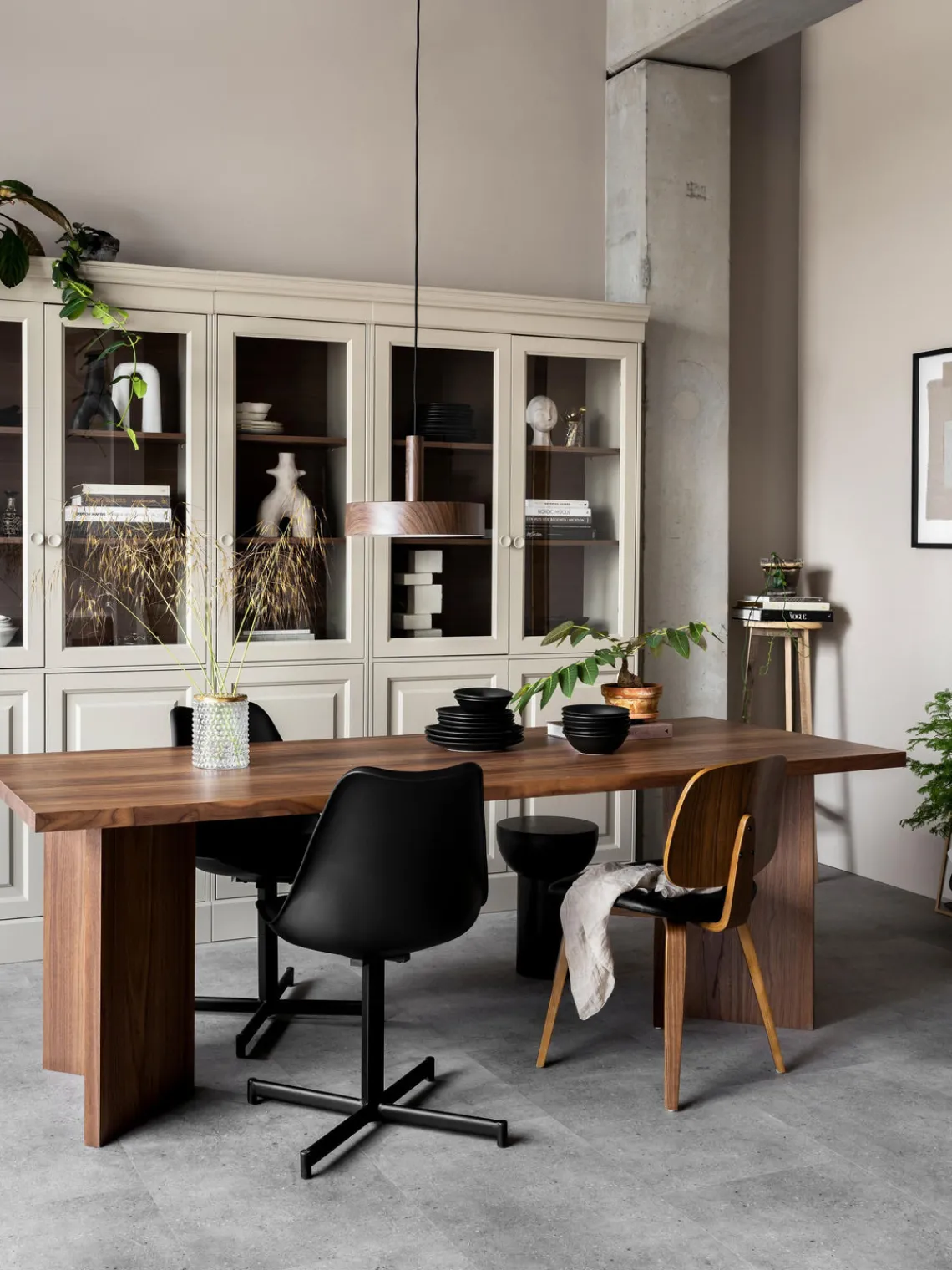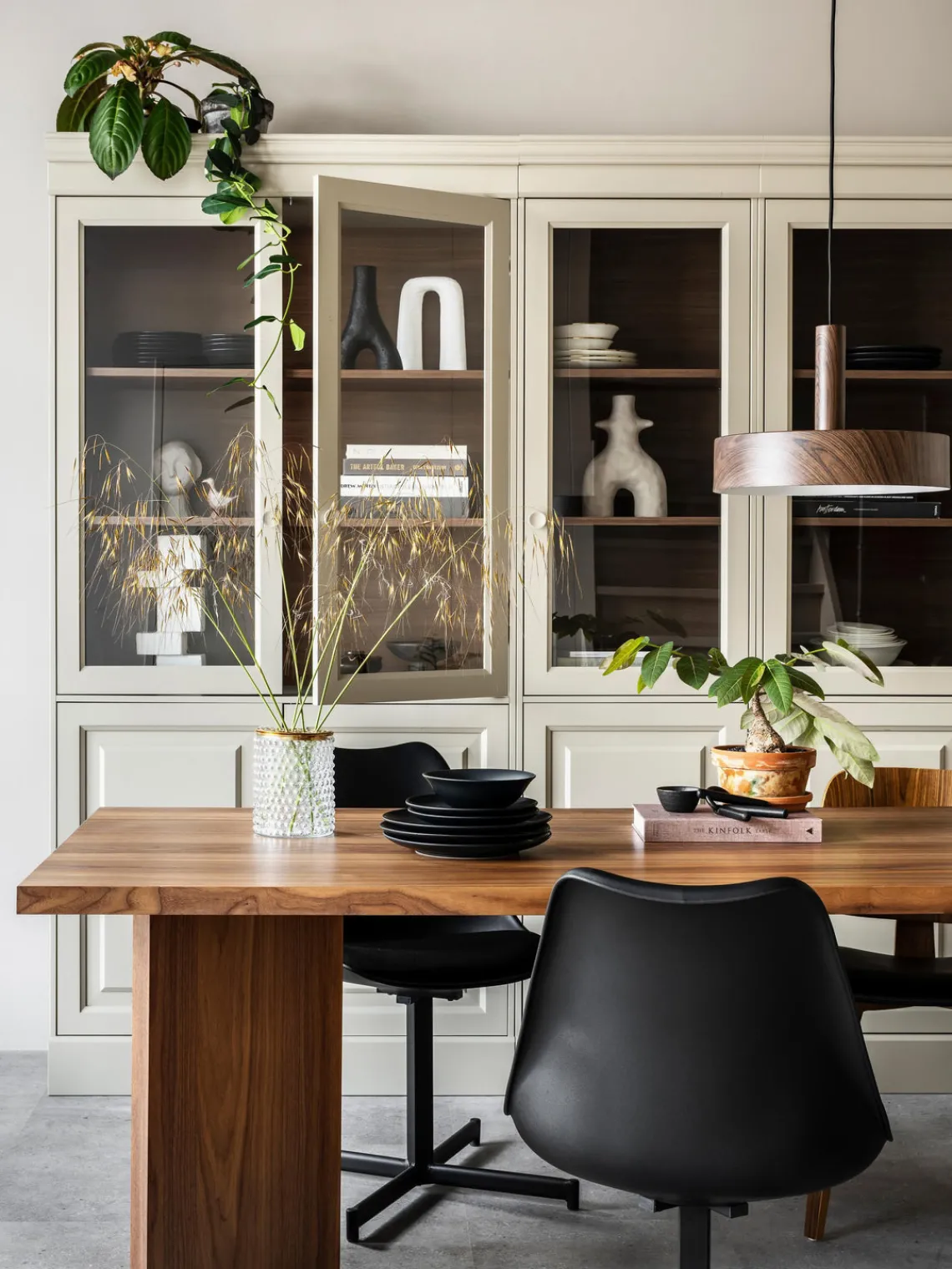 La vitrina tiene cinco compartimentos.